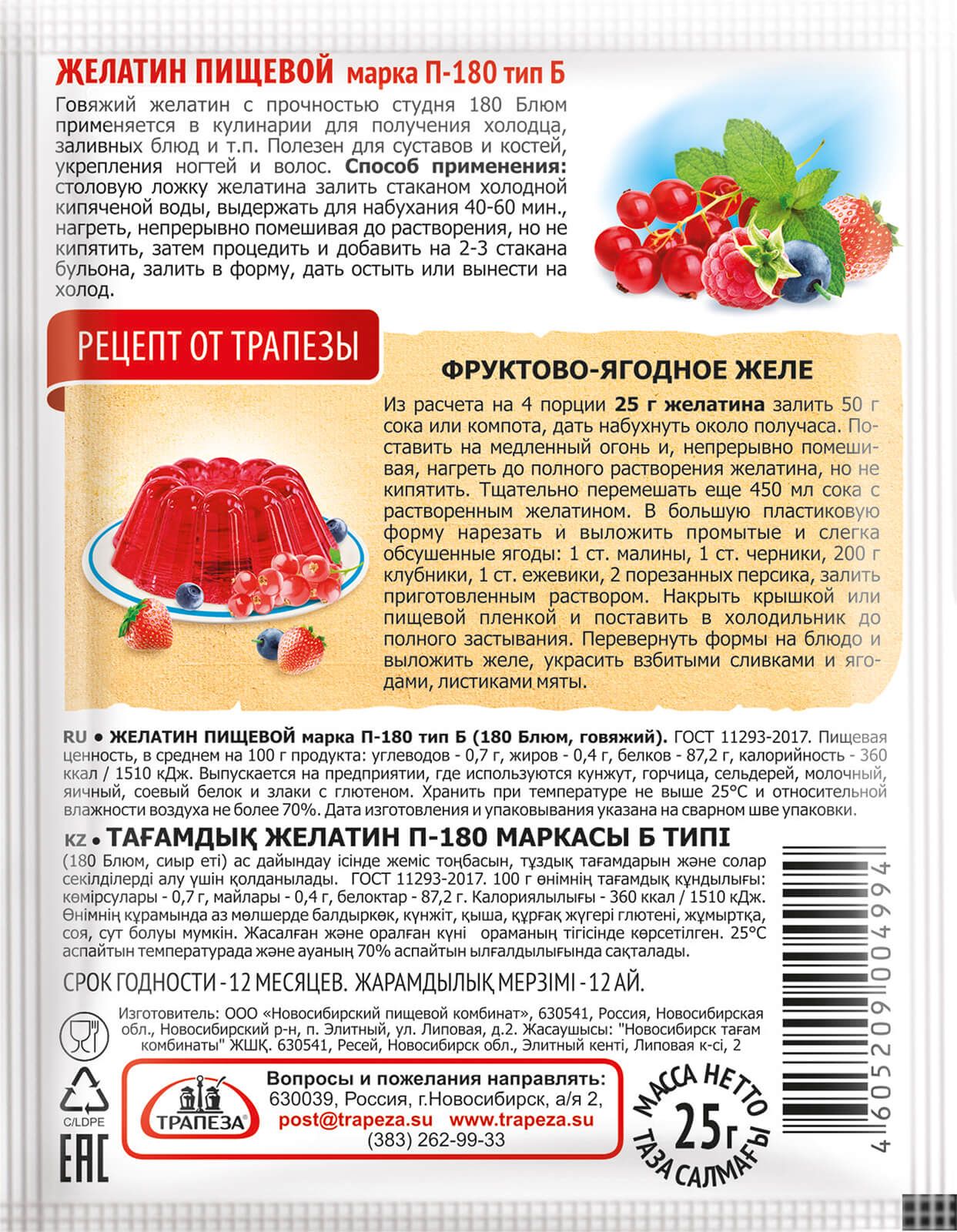 Желатин пищевой (марка П-180,тип Б) "Трапеза" 25г