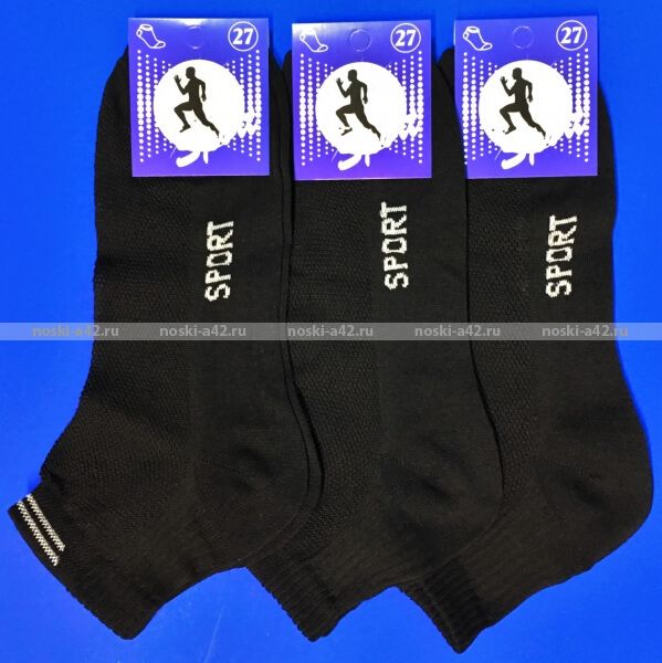 Носки мужские укороченные спортивные сетка г. Владимир крашеный лён арт. А-10 ЧЕРНЫЕ