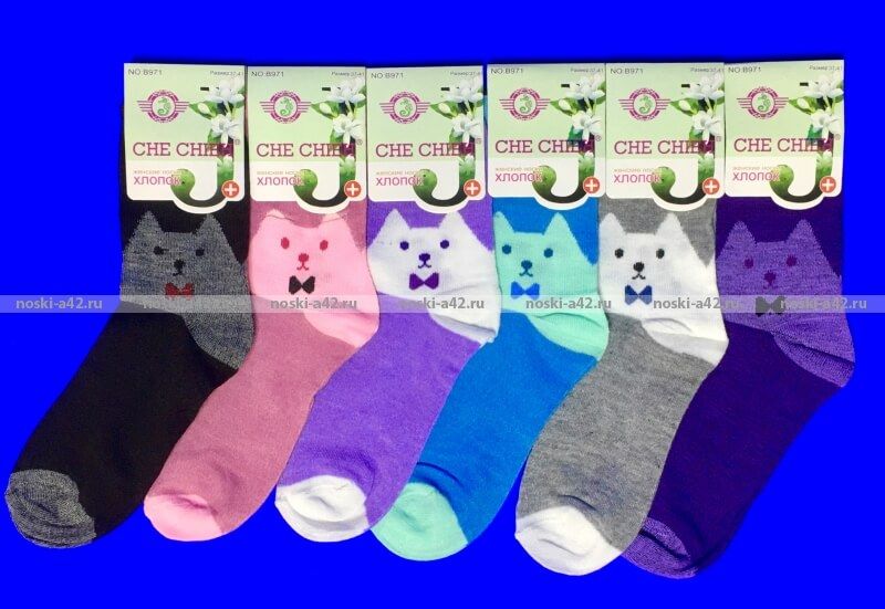 Носки женские "Большая кошка" - в одной упаковке 12 пар одного универсального размера разного цвета Цветассорти Со