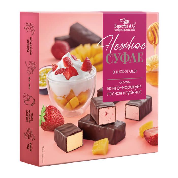 Нежное суфле Ассорти манго-маракуйя/с лесной клубникой, 155г (6шт/кор)