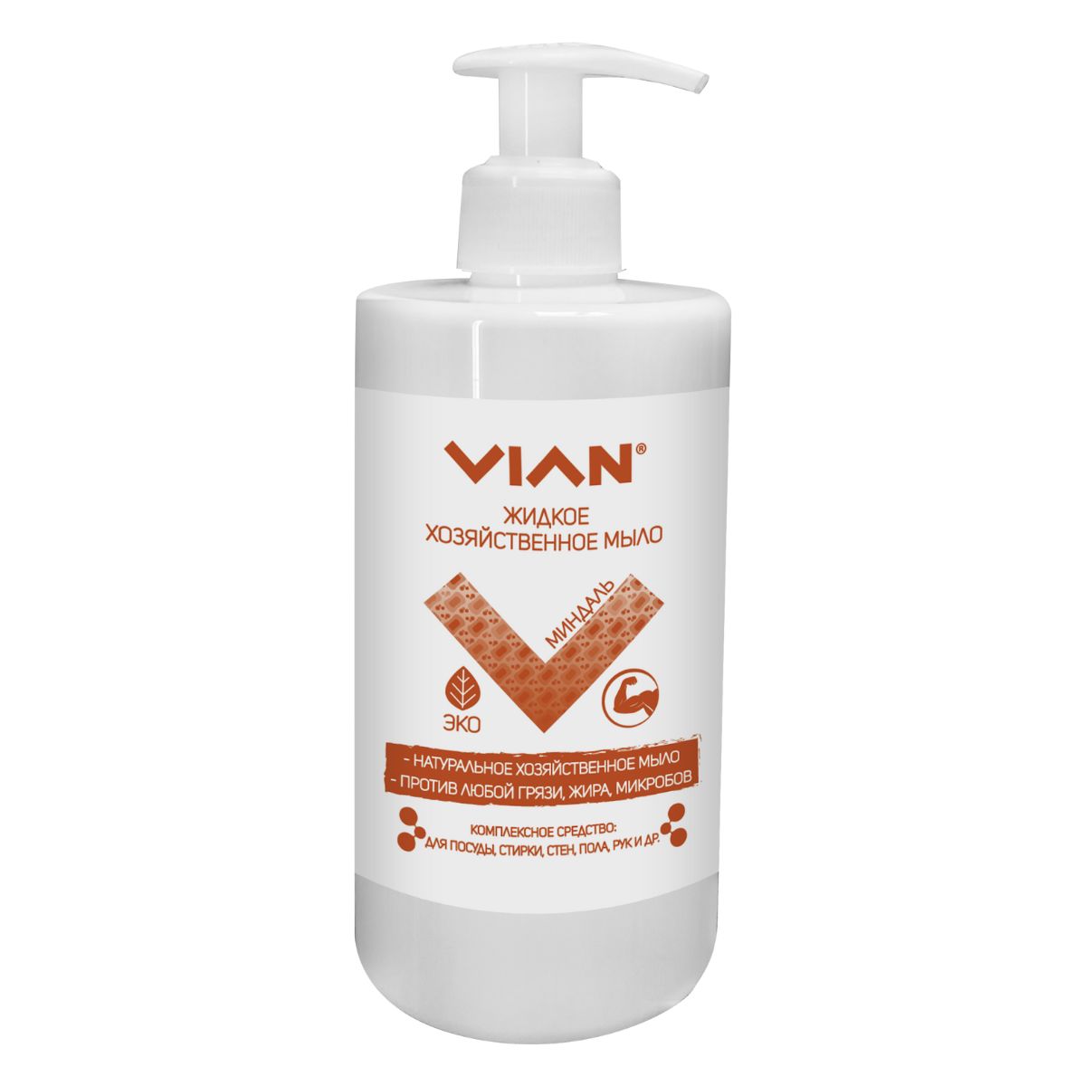 Мыло жидкое хозяйственное VIAN МИНДАЛЬ, 450 г настоящее хозяйственное мыло, без SLS против любой грязи, жира, микробов комплек...