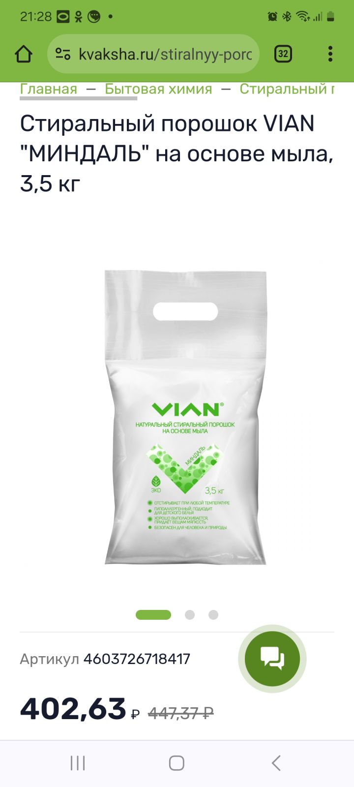 Стиральный порошок VIAN "МИНДАЛЬ" на основе мыла, 3,5 кг