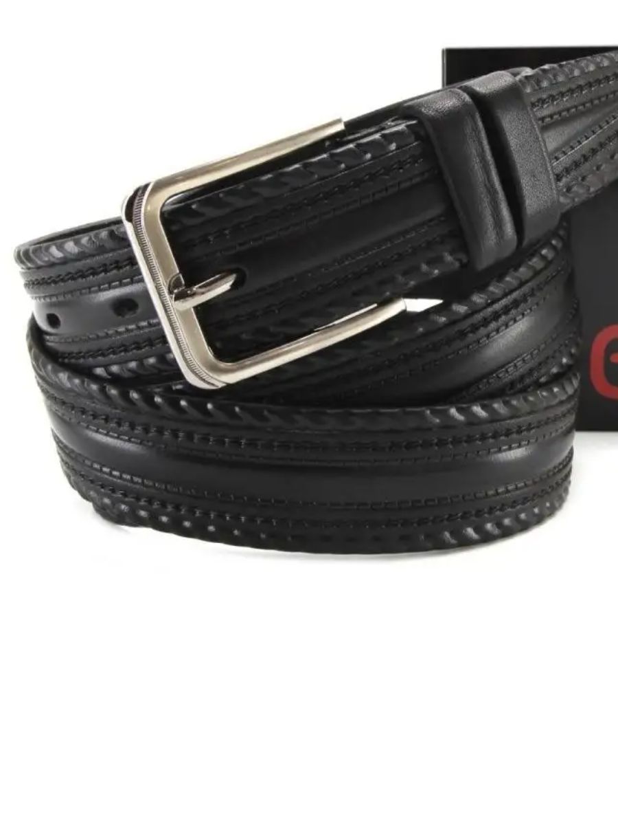 Ремень нат. кожа CHROME тиснение, черный 123610