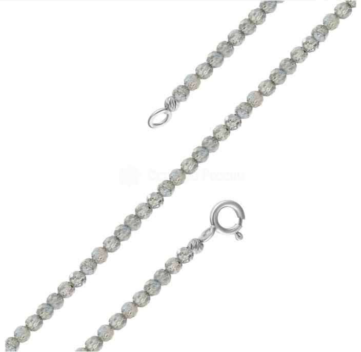 Браслет из серебра с бусинами нат. лабрадора родированный (на леске) 925 пробы БЛБ1-1259