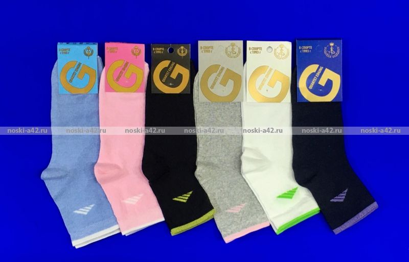 Золотая Игла носки женские спортивные с лайкрой с-1111 оптом - в упаковке 10 пар одного универсального размера, разного цвета....