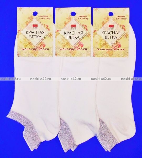 Иваново носки женские укороченные с-1417с белые с люрексом