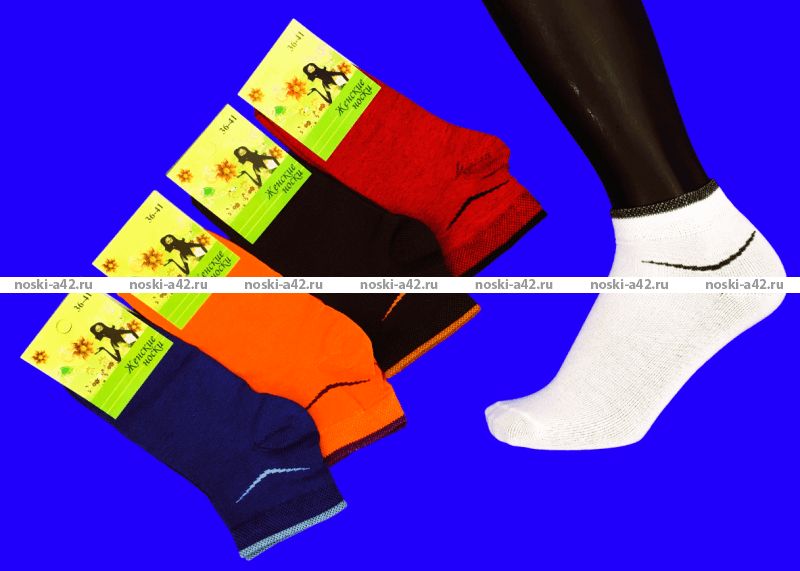Носки женские спортивные антибактериальные с крапивой и эластаном оптом. Женские укороченные носки - в упаковке 10 пар одного ун...