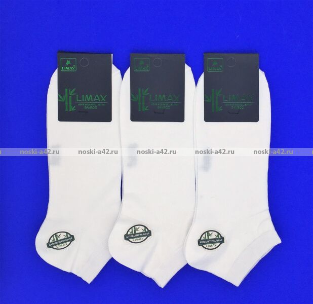 LIMAX носки мужские укороченные бамбук белые оптом - в упаковке 12 пар одного универсального размера белого цвета. Носки с антиб...