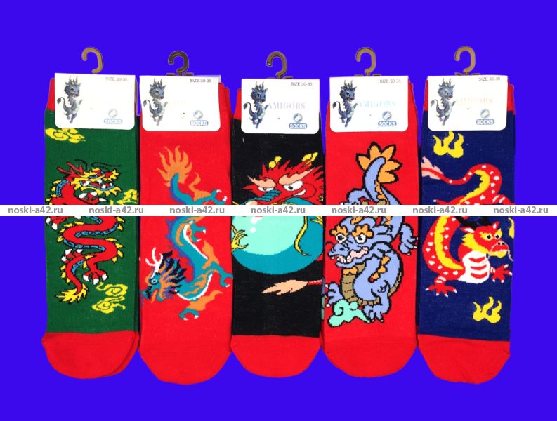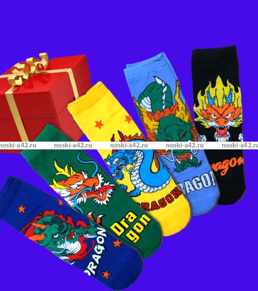 Носки "Символ 2024 года" оптом - в упаковке 10 пар одного универсального размера разного цвета и рисунков. Носки с пяткой. Хорош...
