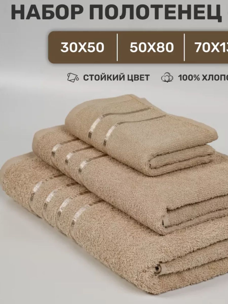 Набор махровых полотенец,3 шт(30х50, 50х80, 70х130) бежевый*