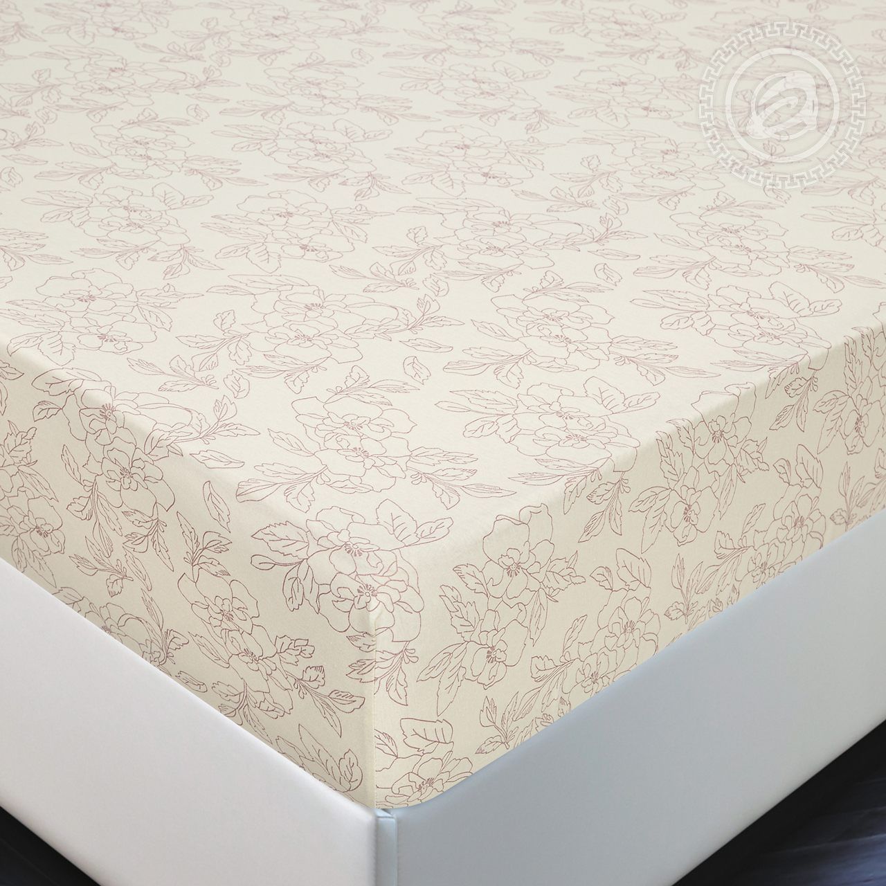 Простыня на резинке "Цветы бежевые"-160х200 арт.254