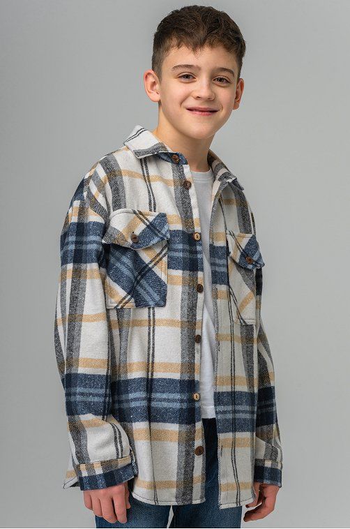 Детская теплая фланелевая рубашка в клетку Happyfox