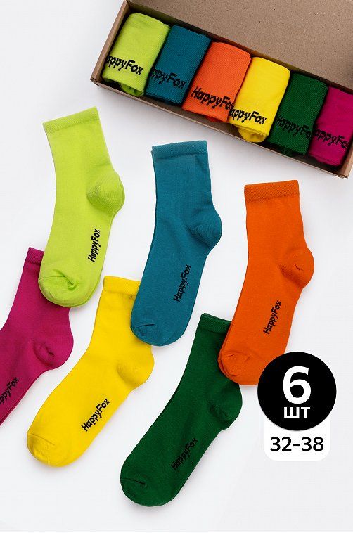 Набор носков для девочки 6 пар в подарочной коробке Happyfox