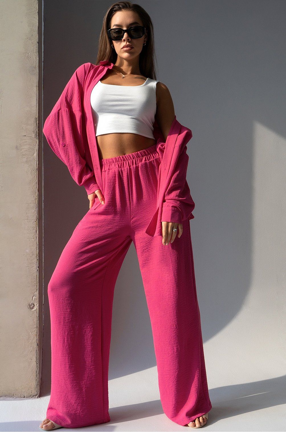 Женский летний костюм оверсайз из ткани-жатка Happyfox
