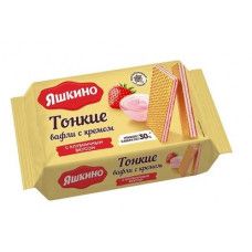 «Яшкино», вафли тонкие с кремом с клубничным вкусом, 144 гр.