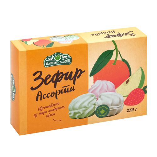 Зефир в вафельном рожке "Ассорти" со вкусом малины, пломбира, яблока, шоколада 360г
