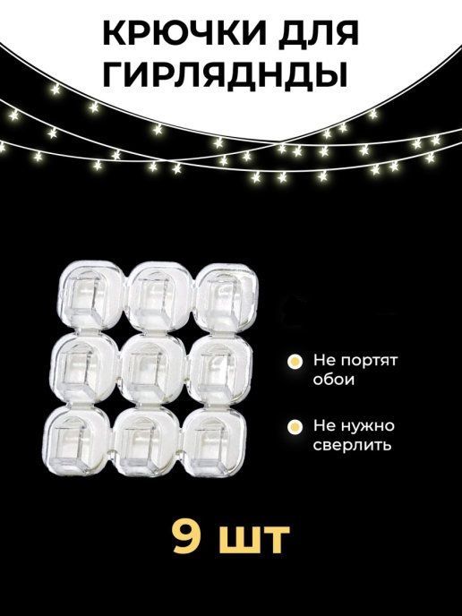 Держатель для проводов и гирлянд ,самоклеящийся 9 шт.