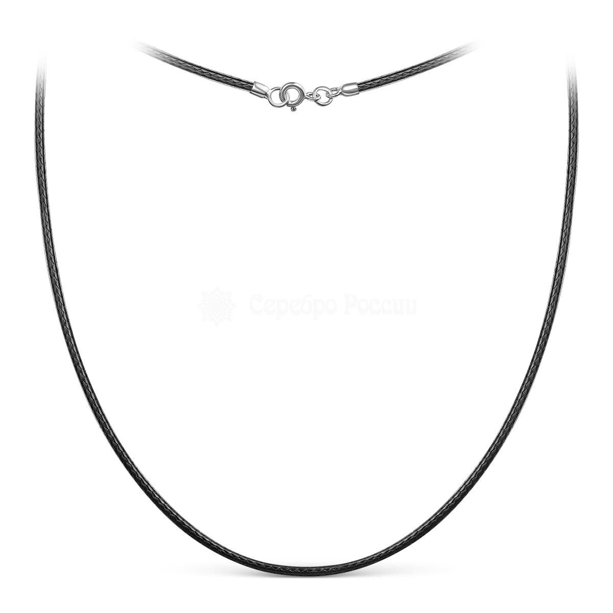 Шнурок текстильный (вощёный) с замком из родированного серебра