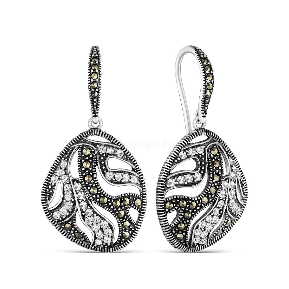 Серьги из чернёного серебра с горным хрусталём и марказитами