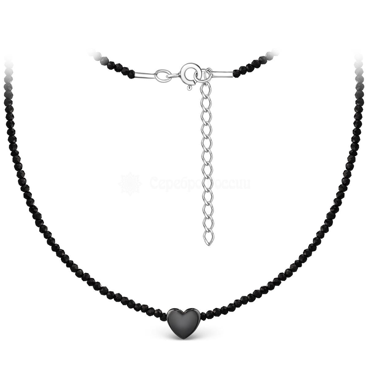 Колье из серебра с гематитом и чёрной натуральной шпинелью родированное - Сердце Б-01сч