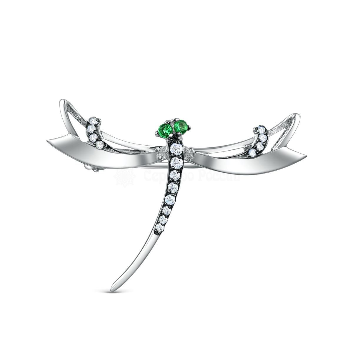 Брошь из серебра с фианитами родированная - Стрекоза Бр-004р232