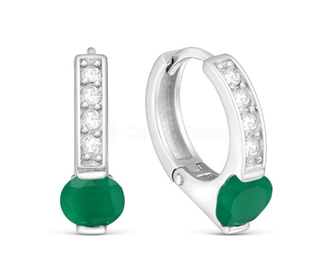 Серьги из серебра с натуральным агатом и фианитами родированные 925 пробы 2-4207р40900