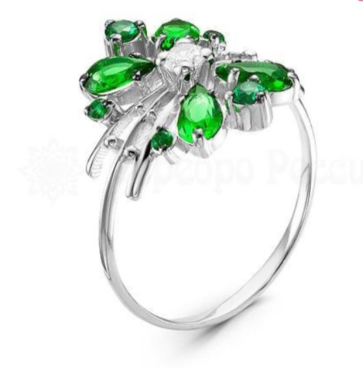 Кольцо из серебра с кварцем изумруд и фианитами родированное 925 пробы 1-022р133
