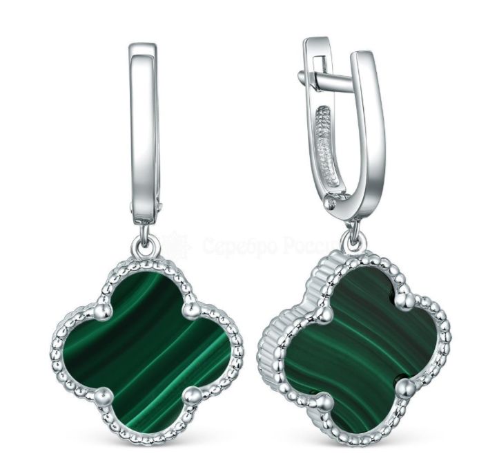 Серьги из серебра с малахитом родированные - Клевер, четырёхлистник 221-10-148-3р