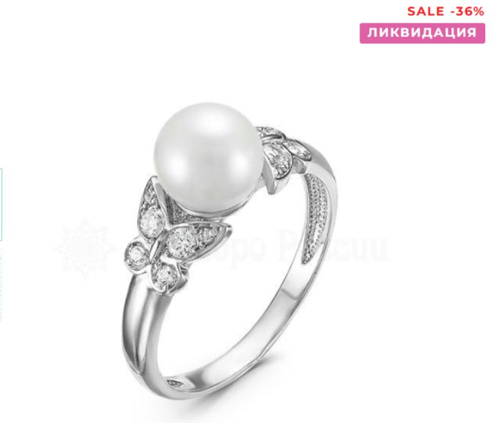 Кольцо из серебра с жемчугом и фианитами родированное 925 пробы к799-жемчуг