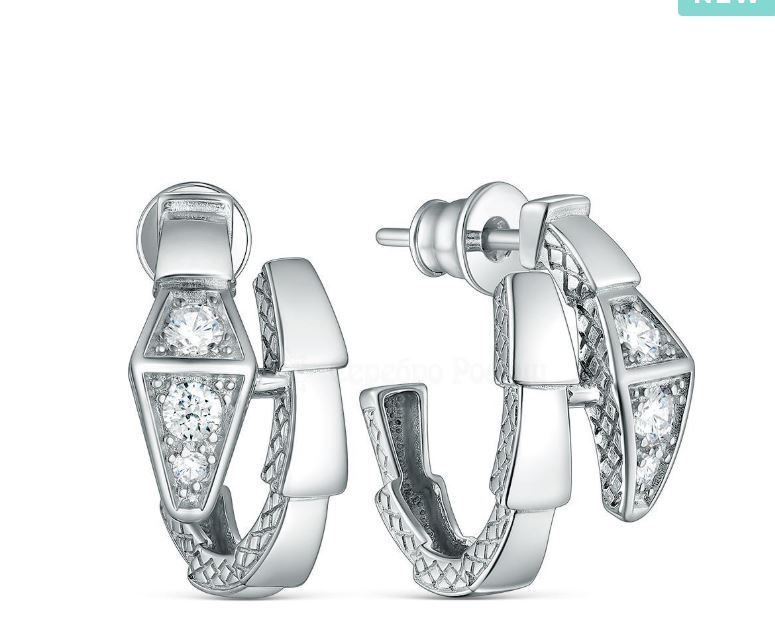 Серьги-пусеты из серебра с фианитами родированные - Змеи