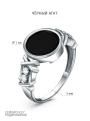 Кольцо из серебра с чёрным агатом и фианитами родированное