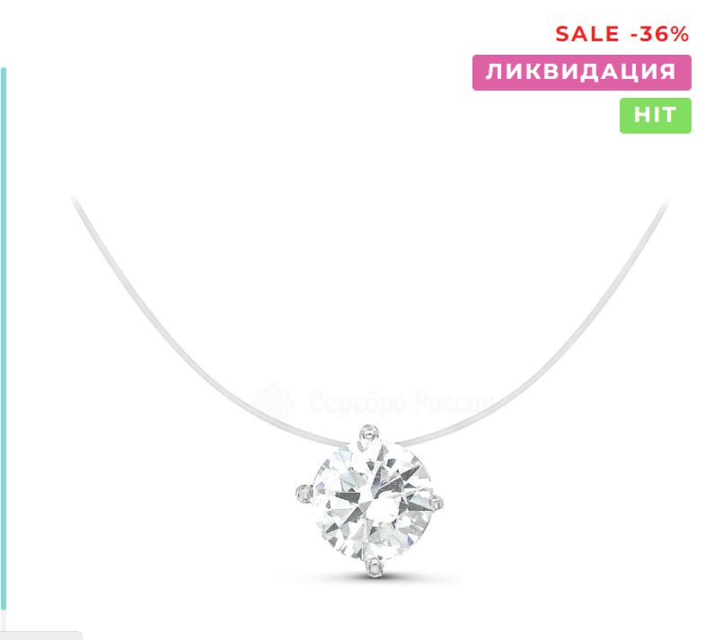 Колье из серебра с фианитом родированное (на леске) 925 пробы Лс10.09.00