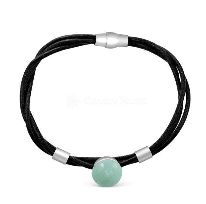 Браслет из серебра с плавленым кварцем мятного цвета и каучуком родированный (магнитный замок) рб-141002р134