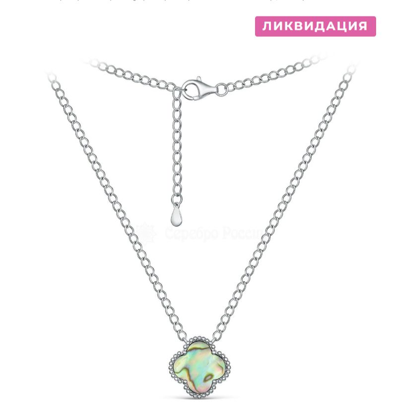 Колье из серебра с перламутром родированное - Клевер, четырёхлистник TC-N00206-X-W-РSA-X-