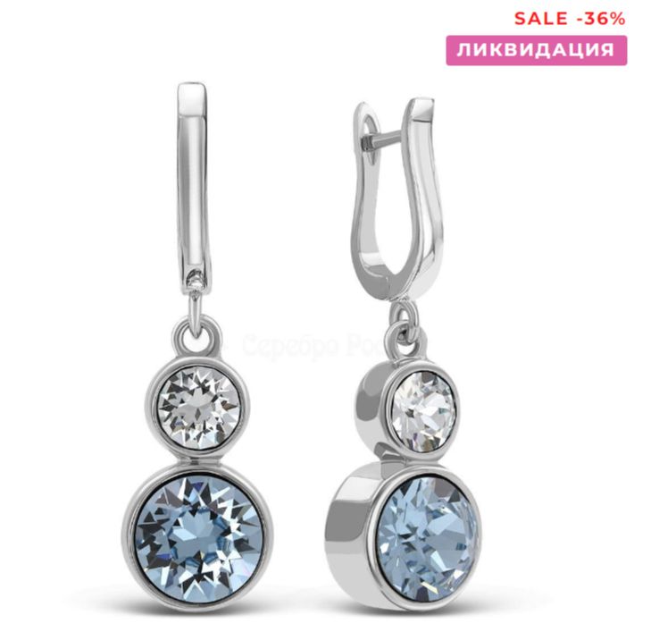 Серьги из серебра с кристаллами Swarovski Аквамарин родированные 925 пробы BHR-1039-2-SER