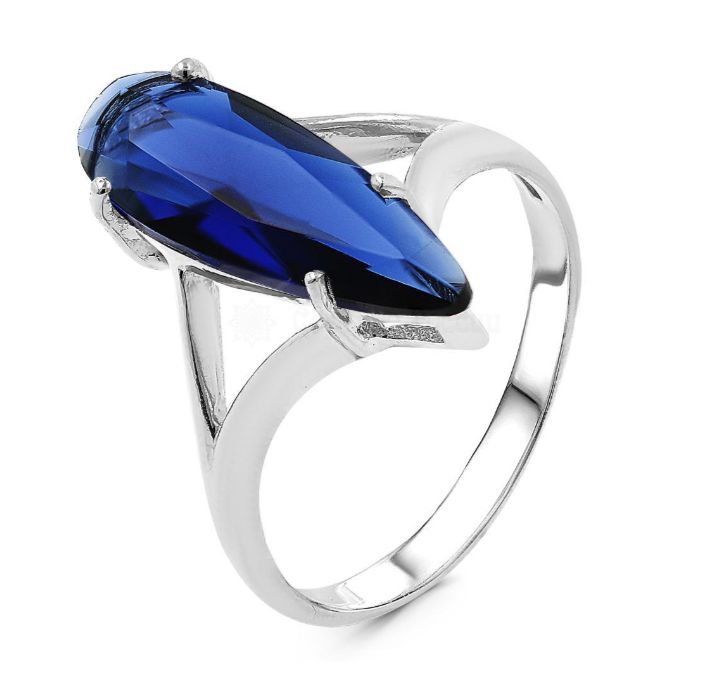 Кольцо из серебра с пл.кварцем сапфир родированное 925 пробы 1-2058р-108