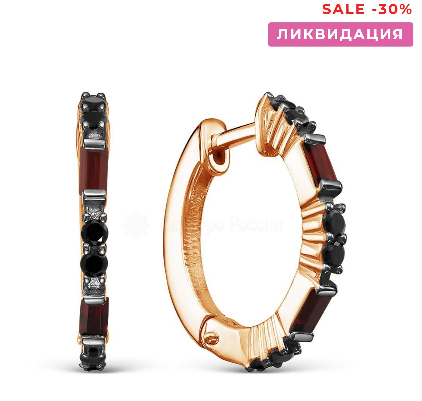 Серьги из золочёного серебра с нат.гранатом, нат.шпинелью и родированием 925 пробы
