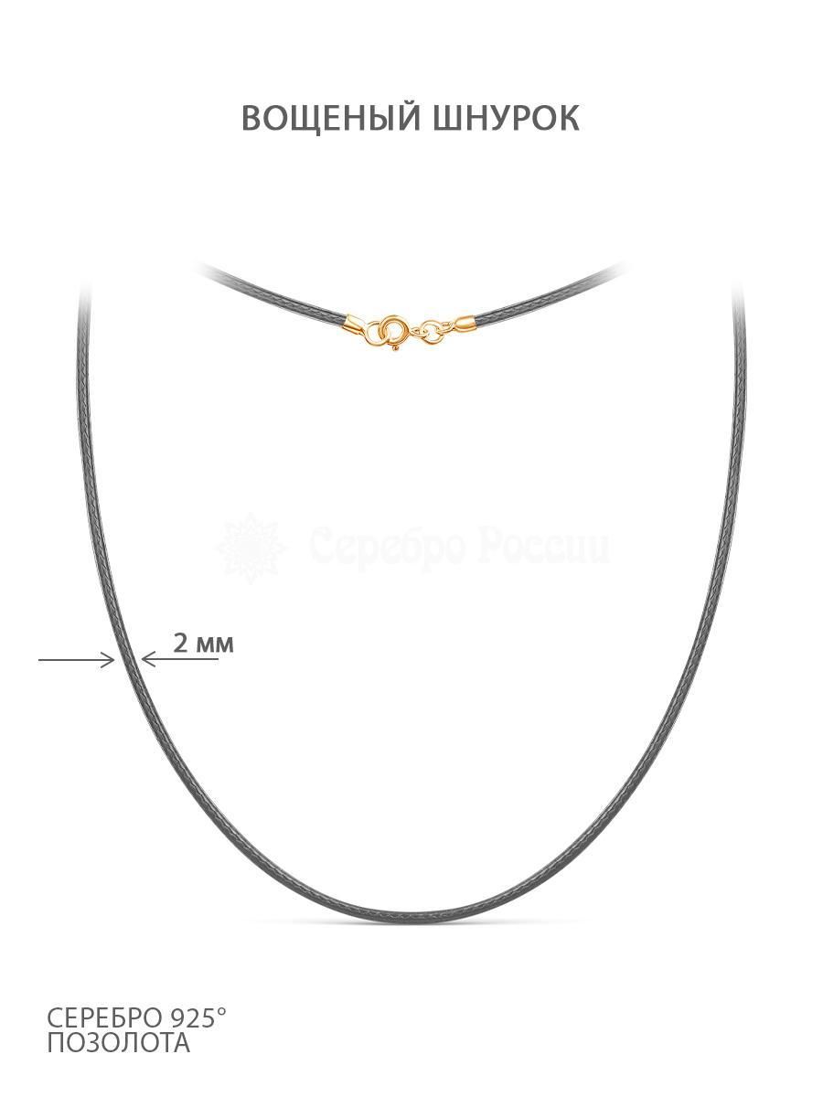Шнурок текстильный (вощёный) серый с замком из золочёного серебра ХШ-003з-01