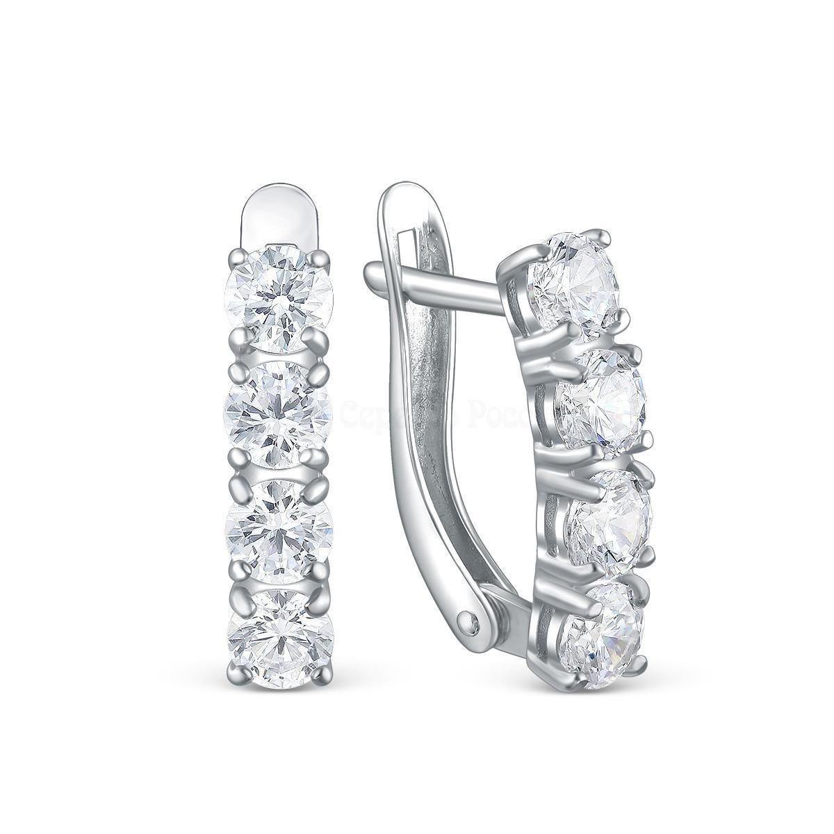 Серьги из серебра с фианитами родированные