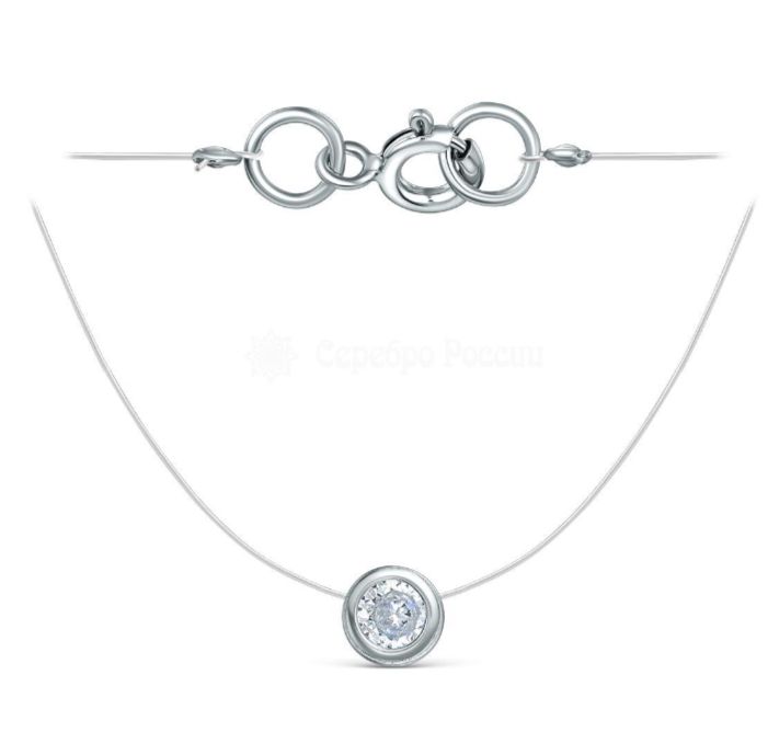 Колье из серебра с фианитом родированное (на леске) 925 пробы Л-1083р