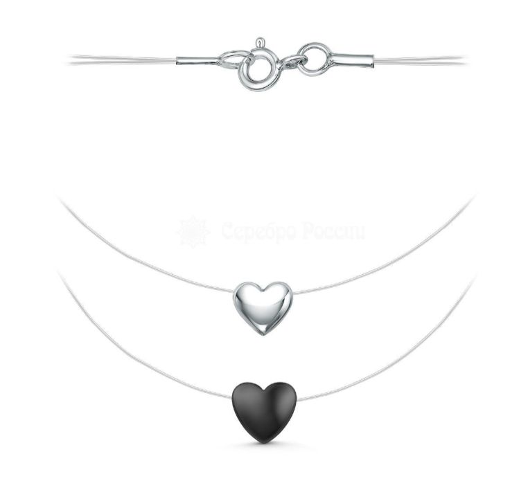Колье на двойной леске из серебра с гематитом родированное - Два сердца ЛС-030срс