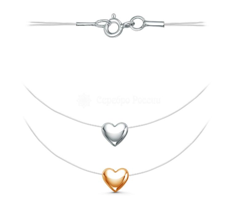 Колье на двойной леске из родированного серебра с позолотой - Два сердца ЛС-030срз