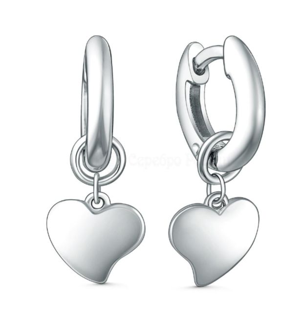 Серьги-трансформеры из родированного серебра со съёмными нижними частями - Сердечки (2 в 1) 925 пробы 2340404834