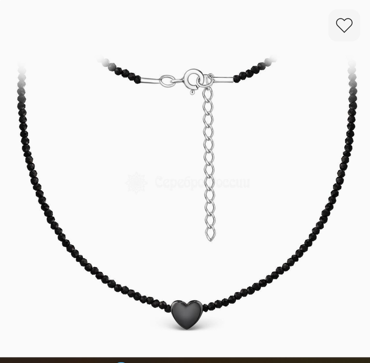 Колье из серебра с гематитом и чёрной натуральной шпинелью родированное - Сердце Б-01сч
