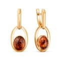 Серьги женские из золочёного серебра с натуральным янтарём 925 пробы 2-395з440