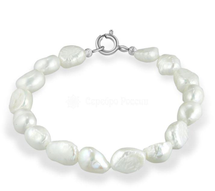 Браслет из серебра с бусинами культ. речного жемчуга родированный 925 пробы БББ1-1759