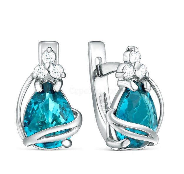 Серьги из серебра с плавленым кварцем цвета апатит и фианитами родированные 00031266РС