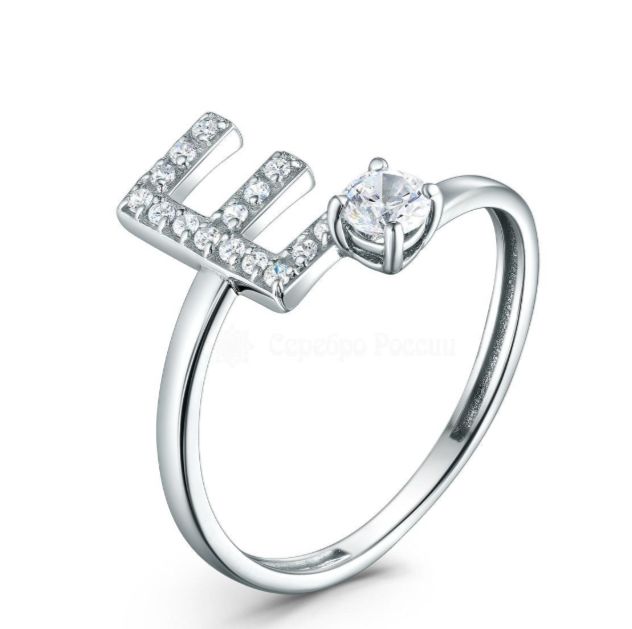 Кольцо из серебра с фианитами родированное - буква "Е" 925 пробы К-4602-Р