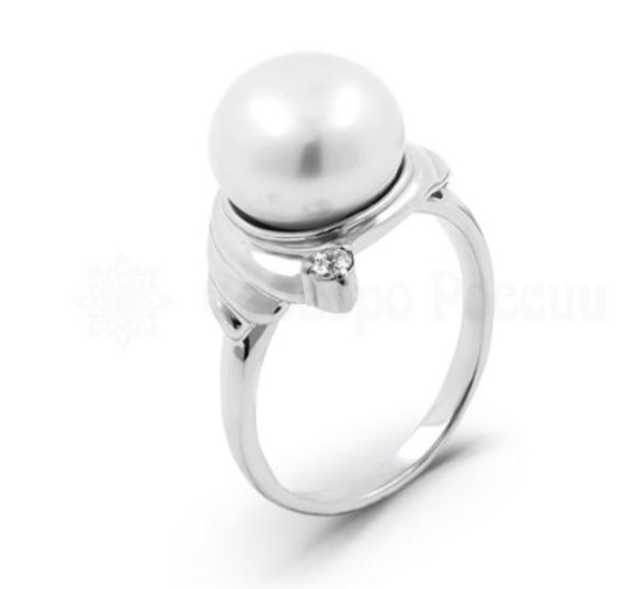 Кольцо из серебра с культивированным жемчугом и фианитами родированное 925 пробы К-3081рп100500