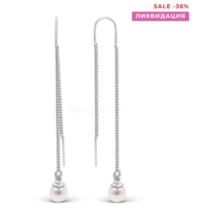Серьги-продёвки из серебра с жемчугом Swarovski родированные 925 пробы С-2980-Р